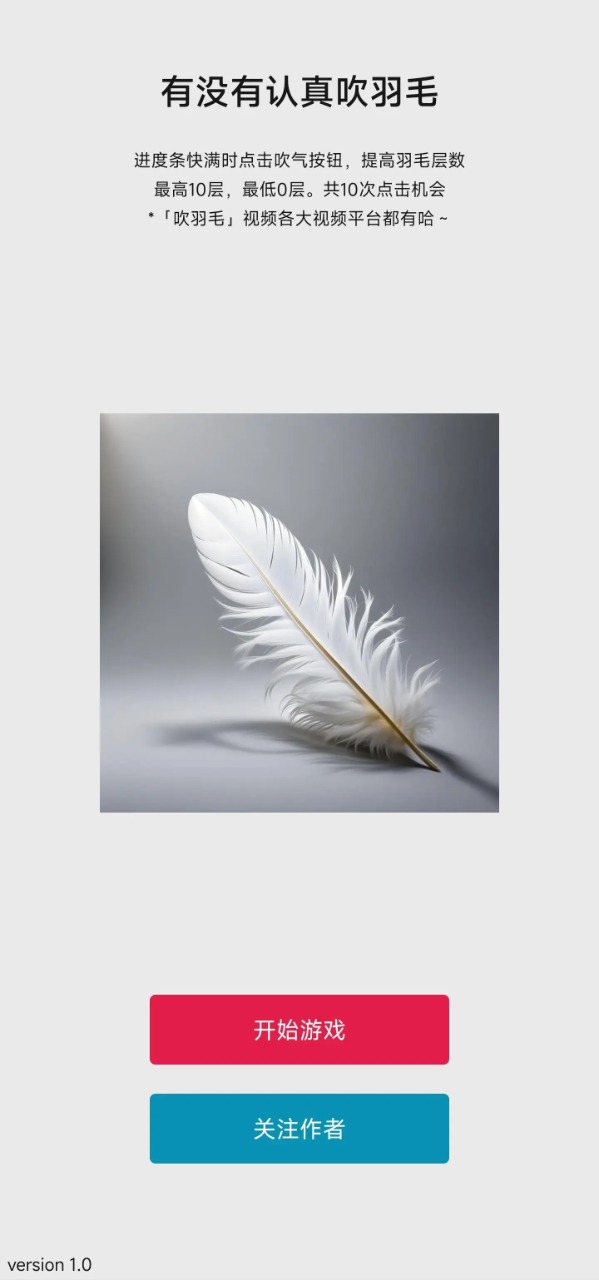 有没有认真吹羽毛是一款令人着迷的休闲游戏,融合了技术挑战和创意操作,通过操控吹气按钮,玩家可以体验到各种风力和难度下的羽毛飞升乐趣,感到满足。