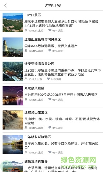 乐游迁安是很有特色的迁安旅游软件,介绍迁安本地的旅游资源,而且上面有很多迁安本地的商家入驻,保证了迁安本地用户,丰富迁安的文化旅游项目,帮助迁安走出自己的世界,感兴趣用户快来绿色资源网下载吧!