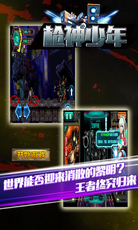 游戏中高品质的游戏画面!史诗的背景音乐!以及完美的智能触控方式!超过20种的重型与轻型武器!钢铁之躯、太极之子、僵尸克星,三大英雄人物开启专属关卡!拯救世界能否迎来消散的黎明?王者终究归来——少年枪神,少年枪神是一款科幻题材的射击游戏!游戏版本已经修改修改,游戏开启了丰富武器解锁,三大英雄可以招募,独特的近战和远攻武器切换战斗,多样化的关卡和BOSS系统,那么加入游戏体验不一样的横版闯关游戏吧!