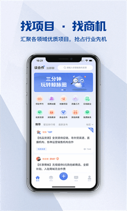 鲸脉圈app是一款能够帮助商务人士拓展商业资源人脉的应用程序,通过这款软件我们能轻松建立商务关系,扩大人脉圈,找到潜在的商业合作伙伴,同时app为我们提供了智能匹配功能,可以根据你的需求和背景,推荐最合适的商业资源和机会。