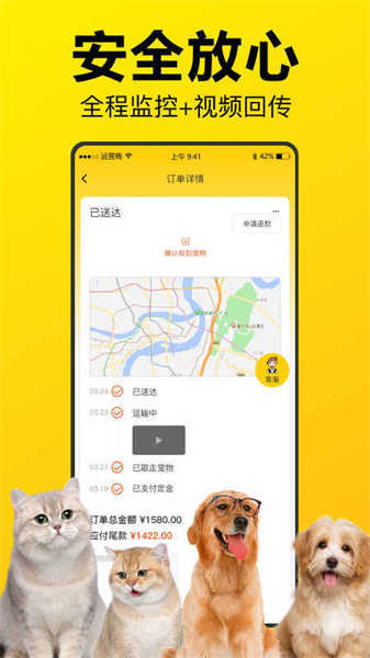 宠宝宠物托运app致力于专业的宠物服务机构平台,在这里你可以让您的爱宠,享受贴心服务,快速且安全的送达,打开软件输入将要送达的地址,就会找到附近的优质店家,点击进入可以查看店铺的业务范围,服务评分等,可以全程跟踪订单信息,每一个阶段都会向用户反馈最新的宠物信息,保证全过程的监控,同时接送到家服务,保证服务的完整性,让您足不出户的迎接爱宠,专业宠物健康体检,保证运送过程中的宠物安全。