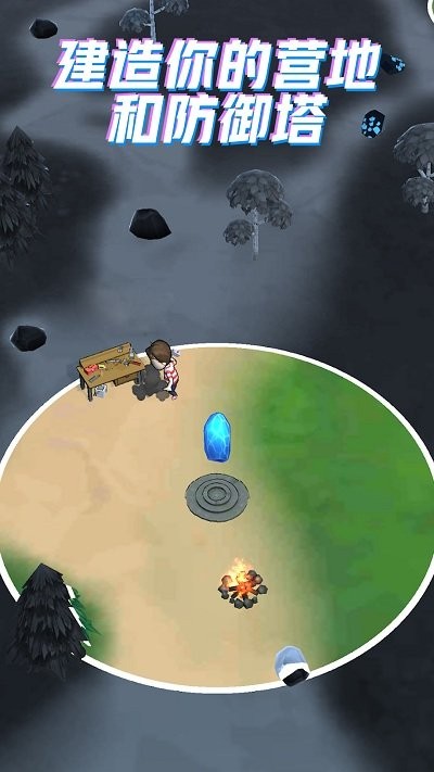 2、待你的庇护所位置选取好了之后,你就可以去砍伐树木收集木材准备搭建房子了,石头搭建的房子更坚固;
