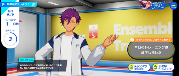偶像梦幻祭Training日服是一款创新的健身陪伴型游戏软件,它将健身和游戏完美结合,让玩家在愉悦的游戏体验中获得身体的锻炼和健康管理,通过与虚拟人物的互动和社交功能,玩家能够享受充满动力和乐趣的健身旅程。