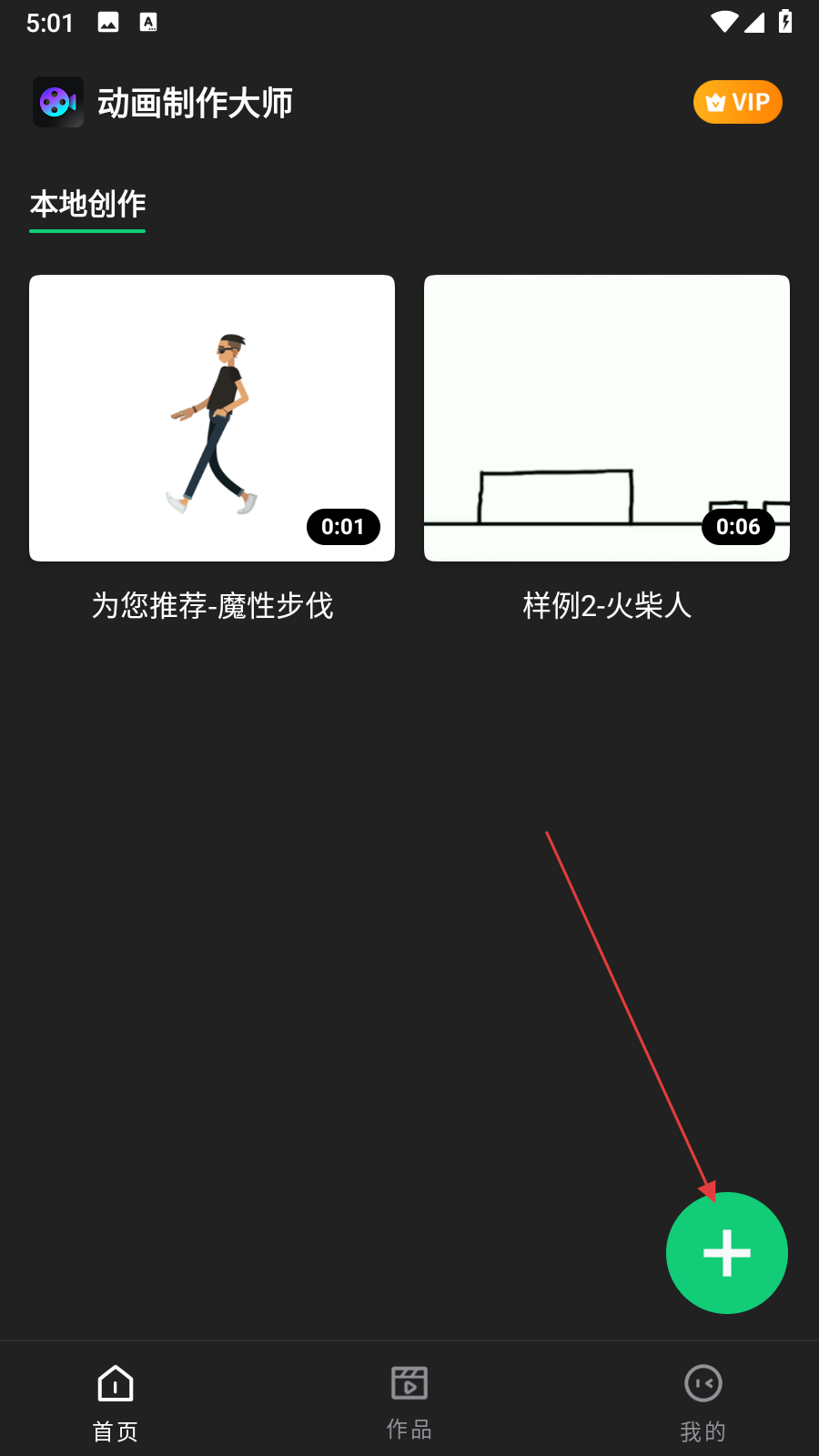 1、打开动画制作大师APP,点击首页右下角绿色的+按钮,进入动画创建页面。