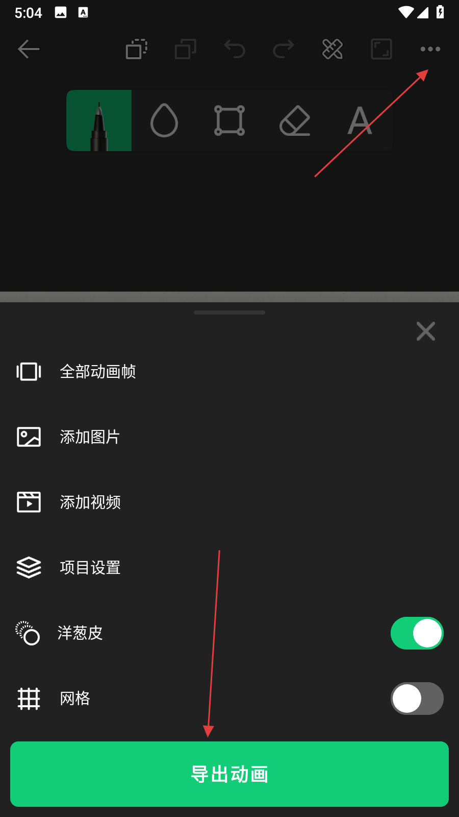 4、动画制作完成后,点击右上角的···更多选项按钮,在弹出的菜单中点击导出动画。