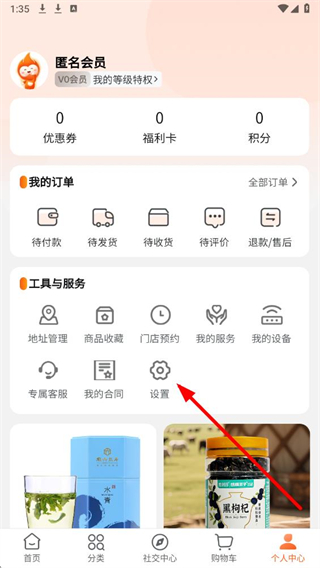 1、打开壹品慧APP后,在个人中心界面找到设置选项并点击,进入设置页面。