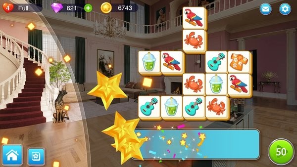 2、将获得家居的拼图碎片,这些碎片将会被打散在不同的三消关卡中。