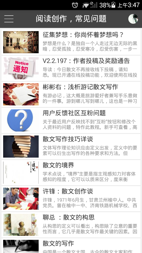 今日散文app是一款精品阅读软件,它不仅提供优秀的名家作品和散文,同时也提供投稿平台,你可以将自己的优秀作品投给它,除此之外,你也可以和同事阅读爱好者的人们一起交流,总之,这款软件就是为了让阅读和文学交流来熏陶你的阅读app!感兴趣的人快来下载吧!