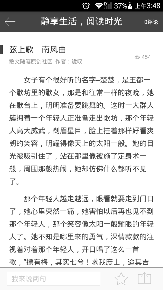 ⑵可以在散文社区里发帖、留言,与阅读爱好者们进行实时交流