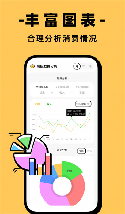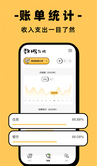 ①、详细统计数据,用户可以更好地了解自己的开销情况,合理规划财务;