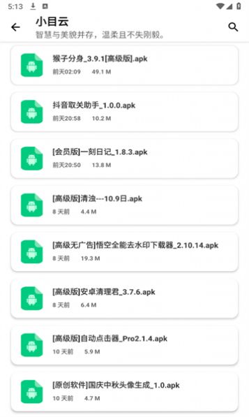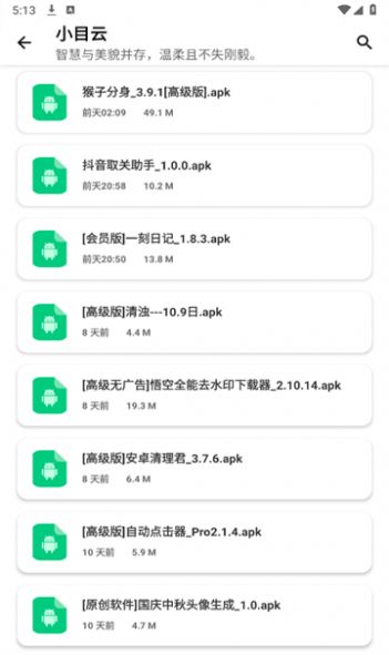 小目软件库app是一款包含全网免费软件下载资源的平台,并且每个软件都有非常详细的分类,用户都能非常轻松的进行选择,大家还可以看到不同月份对于当前软件资源的整理,用户都能掌握各种同步更新的最新版本软件内容。