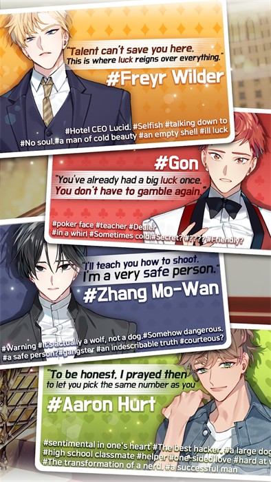③、酒店的日常运营需要耗费大量的资金和精力,而每个男性角色都有着独特的能力。