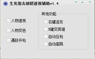 生死狙击破晓透视辅助是一款专门为生死狙击研发的游戏辅助工具,带有强大的辅助功能特色,让你在游戏的世界中找到无限的刺激感,有需要的玩家欢迎下载!