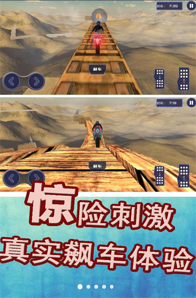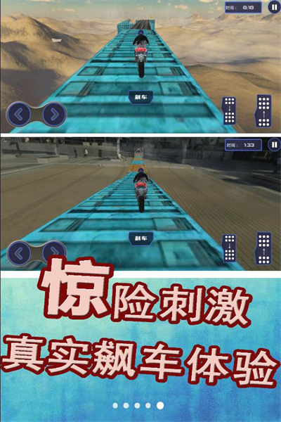一款很热门的竞速游戏,游戏的画面都是全新制作,有沙漠、河流、山川等,不同的场景的难度都是不同的,要运用不同的玩法来稳定摩托车,不断的提速或者减速来完成游戏的挑战,有大量的特技任务要完成,跳跃、避开障碍物等,对我们的技术的要求很高,不断的进行挑战来提升驾驶的技术,才能更好的完成后面更具挑战的赛道。