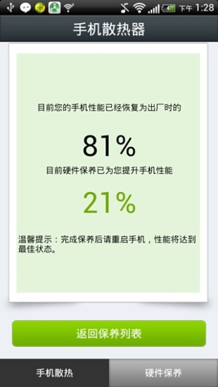 手机散热专家是一款功能强大的手机散热器,你可以在应用上轻松的对手机进行散热功能,对手机进行一键保养,恢复硬件性能,让手机功耗数值降低,提高手机性能。