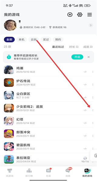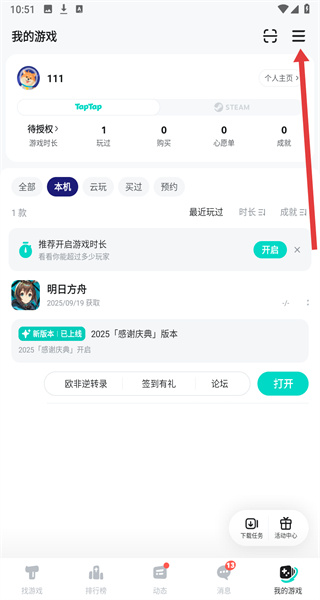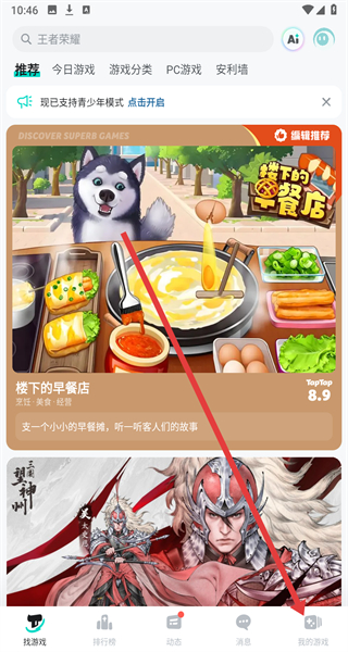 1、在游戏平台主界面点击右下角“我的游戏”,进入“我的游戏”页面。