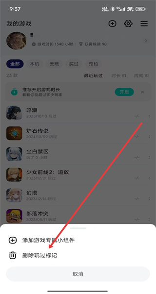 4、可以点击删除玩过标记选项,删除该游戏的游玩记录。