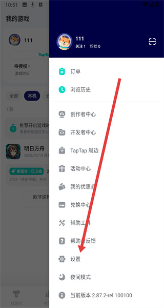 2、在弹出侧边栏后,点击设置选项,进入设置页面进行操作。