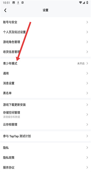 3、在进入到设置页面中,点击下方青少年模式选项,进行相关操作。