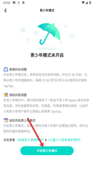4、在了解好青少年模式相关信息后,点击开启青少年模式按钮,即可进行开启操作。