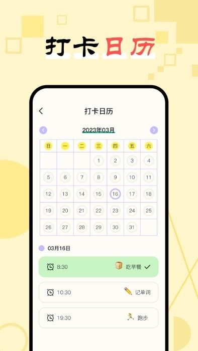 2、提醒功能:软件会根据你设置的时间提醒你打卡,帮助你养成良好的习惯;