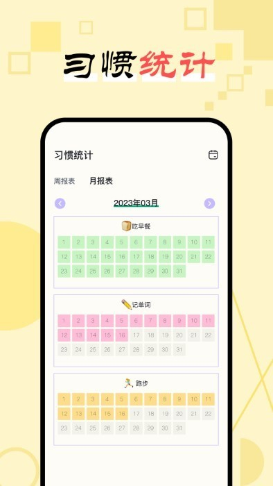 3、多种习惯:我们能自定义各种习惯,从而使用户的习惯养成变得更加简单。