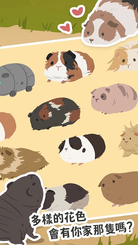 1、游戏中的豚鼠品种非常丰富,通过不断的解锁来获得更多的品种,体验到不同的养殖乐趣;