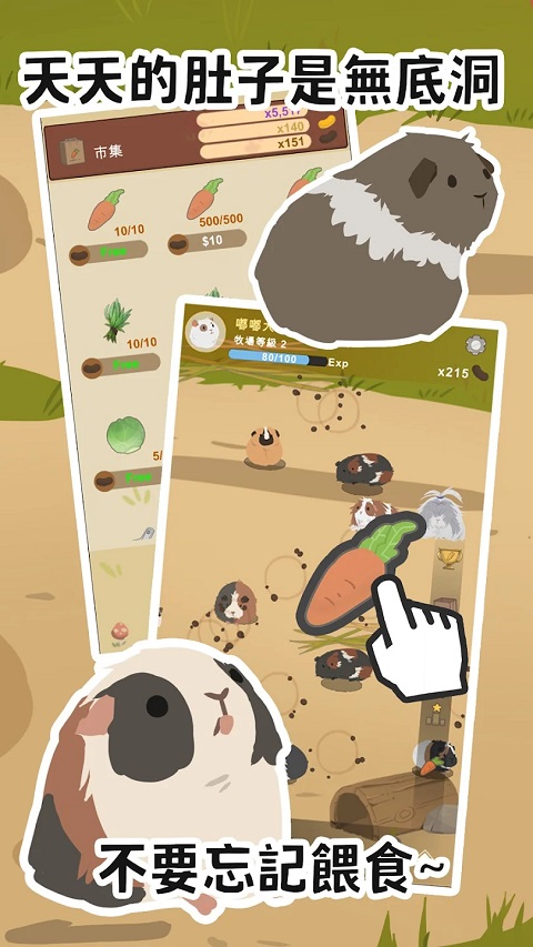 4、游戏的玩法也非常治愈,需要定时喂养豚鼠、清洁农场、购买粮食等,操作上都也常简单;