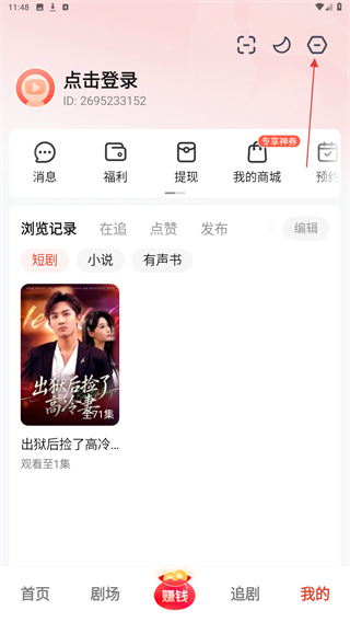 2、进入个人主页内,点击上方登录的功能按钮。