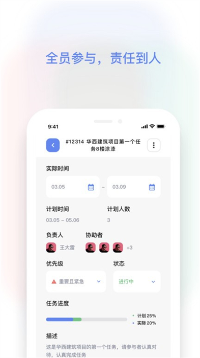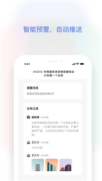 1、通讯协作:能通过app与工地上的人员进行实时的沟通和协作,解决问题更高效;