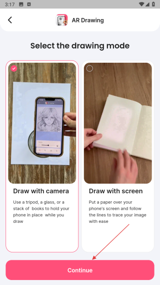 3、进入选择绘画模式界面,选好模式后,点击Continue。
