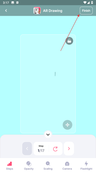 4、在绘画界面按步骤绘制,完成后点击右上角Finish结束操作。