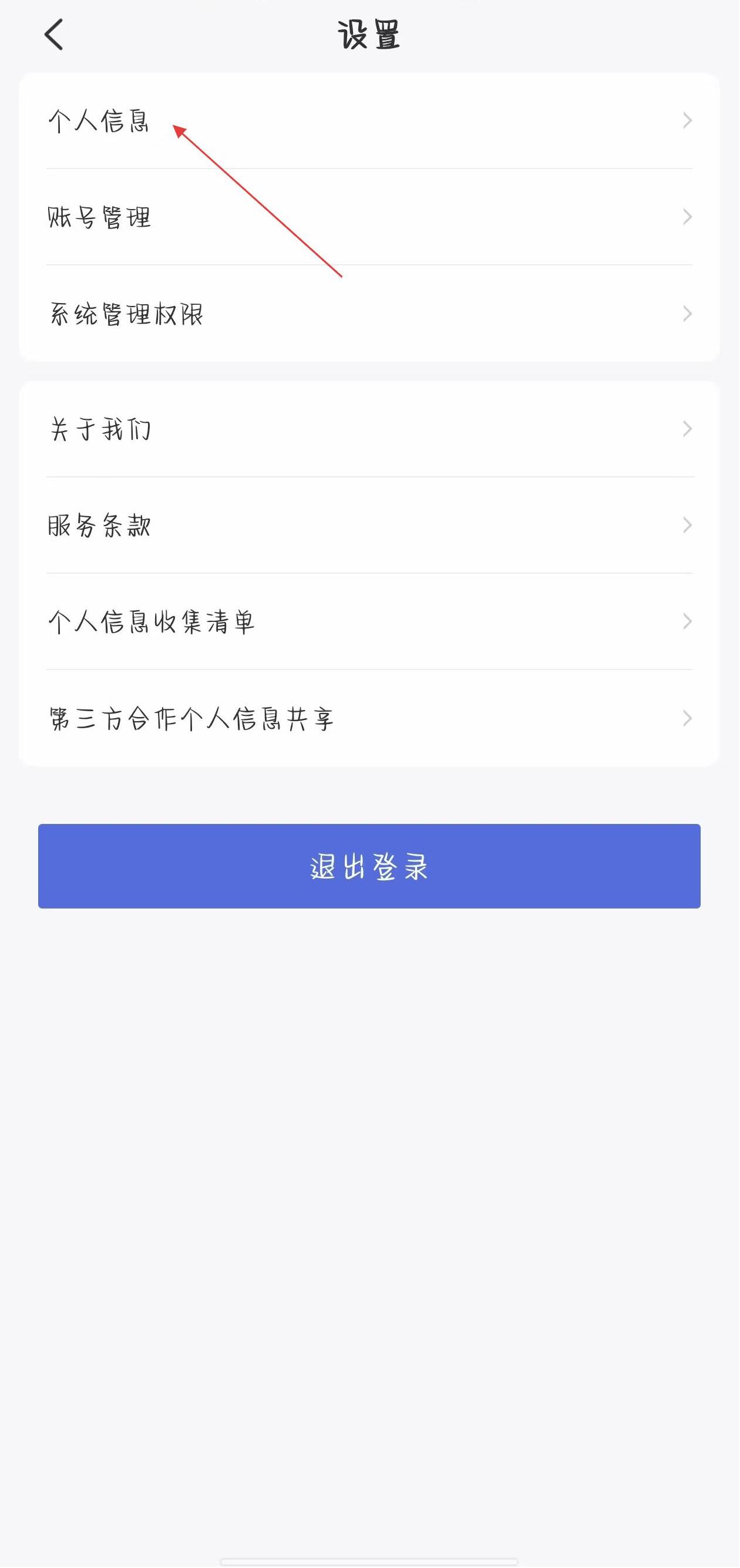 2、在设置界面中,点击个人信息选项,进入个人信息相关页面。