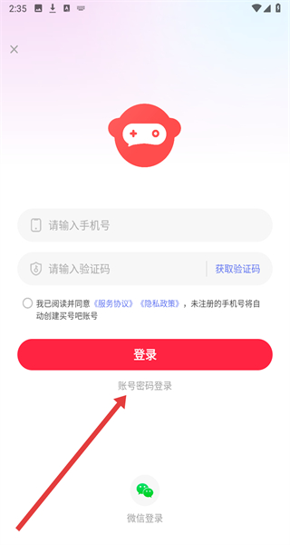 3、登录选择页面点击“账号密码登录”,切换至账号密码登录界面。