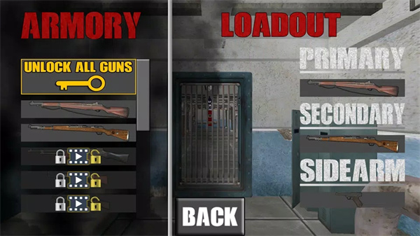 5、当时战争的武器库可以任意的选择,你可以给自己的角色武装到牙齿,成为最强单兵。