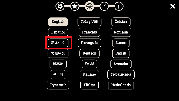3、在语言选择界面中可以看到会有很多语言,会有中文简体和中文繁体的选项,点击选中之后就可以返回主界面;