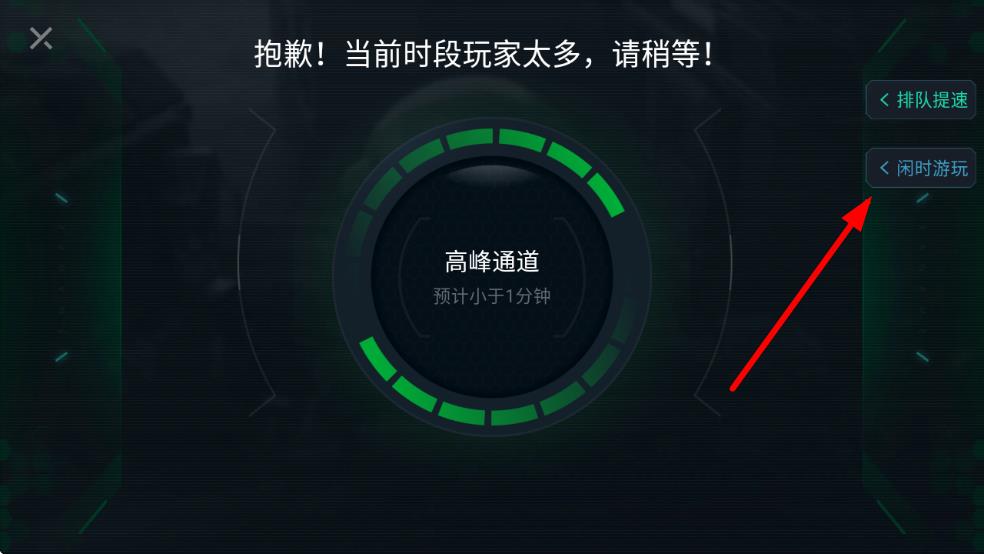 3、若当前排队人数众多,可在排队界面点击闲时游玩,选择玩家较少的时段,从而增加秒进游戏的几率。