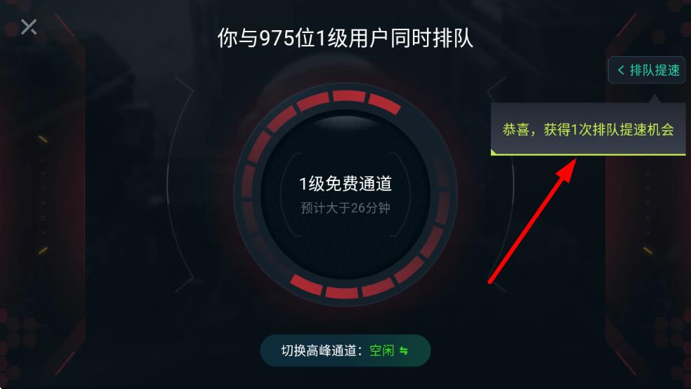 2、若出现排队界面,留意界面上是否有排队提速提示或获得排队提速机会,利用该机会可加快排队进度。