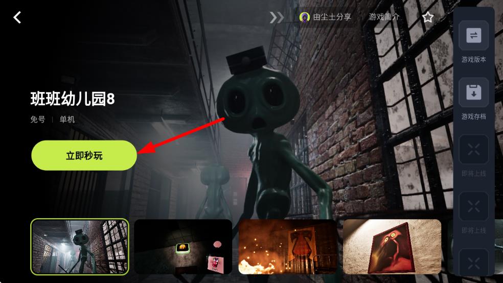 1、打开3a云游戏应用,找到想玩的游戏,比如班班幼儿园8,点击游戏界面中的立即秒玩按钮。