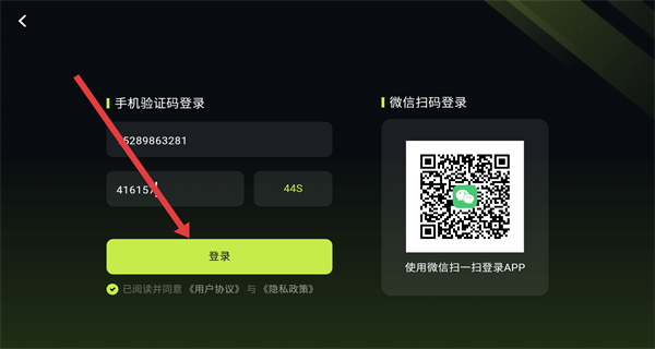 4、在获取到验证码后,点击输入框填写进去,再点击登录按钮,完成登录。