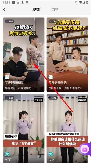 2、在视频页面中,点击任意视频封面即可进入视频播放界面。