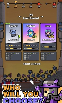 -【打败敌人】:完成关卡并打败敌人,得到奖励与经验,用来提升与强化你的英雄,提升英雄会有更强的技能;