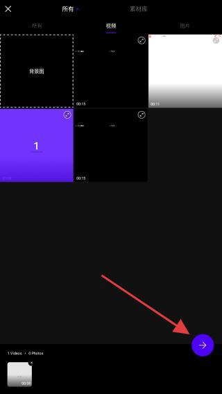 1、打开app,选择要录音的视频,点击→的功能按钮。