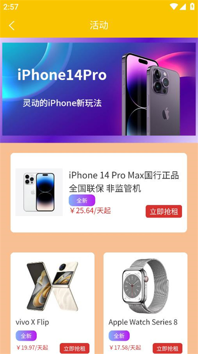 1、方便快捷:提供了数码电子产品租赁服务,方便你能随时便捷租用所需的设备;