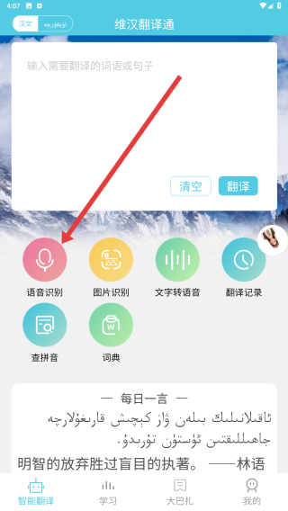 1、在维汉翻译通首页中,点击语音识别按钮进行操作。