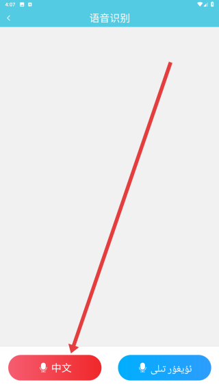 2、在进入到语音识别页面中,可以点击下方中午按钮开始录音识别。