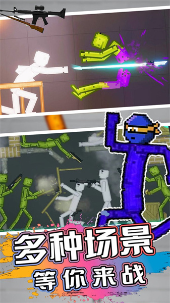 游戏的场景全部采用沙盒的风格塑造的,适合多种不同玩家来游玩,都可以在里面寻找到属于自己的快乐,游戏的武器种类也是非常的丰富的,不同的武器的杀伤力都是有差异的,需要不断的解锁新的武器来面对更加强力的敌人,游戏的限制很少,可以不断的更换新的创意来游玩,收集新的道具来帮助我们避开大量的危险,成为最后的赢家。
