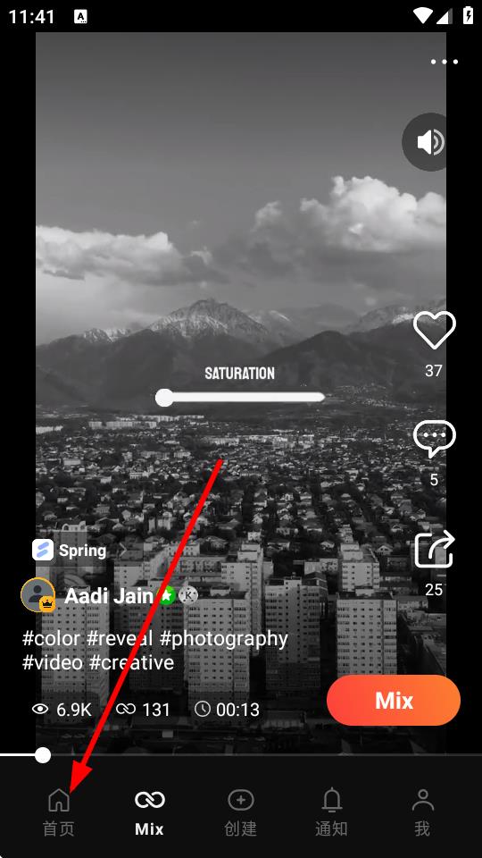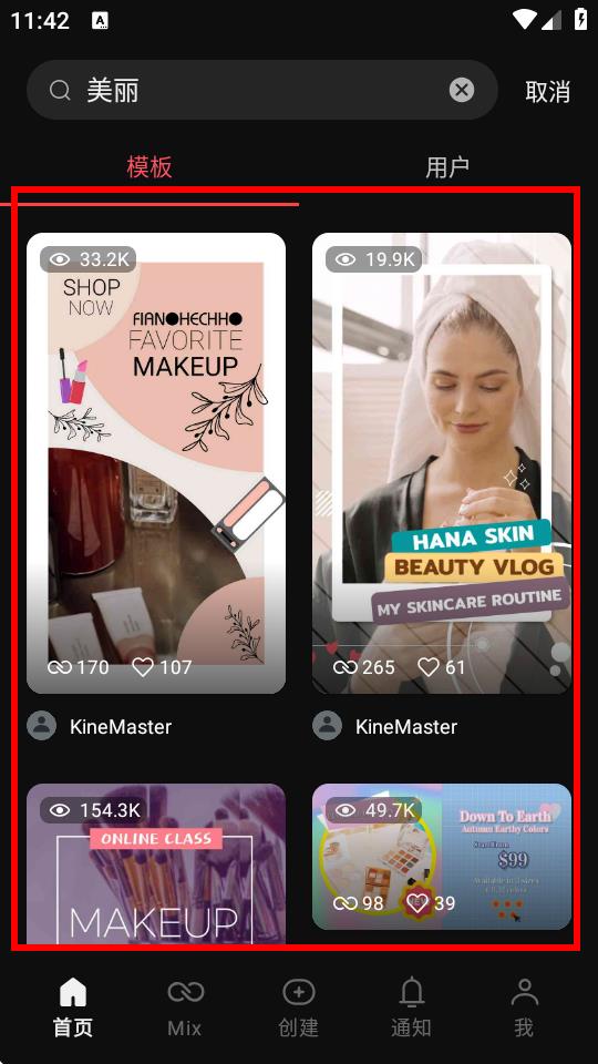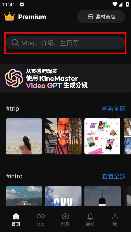 1、打开巧影APP进入首页界面,点击底部导航栏中的首页按钮进入素材搜索页面。
