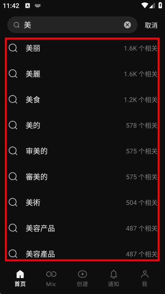3、输入关键词后,下方会显示相关搜索联想词,点击合适联想词或直接点击键盘搜索键,即可查看搜索结果。