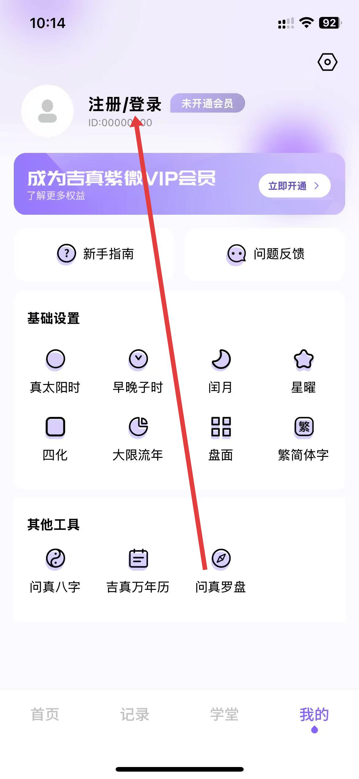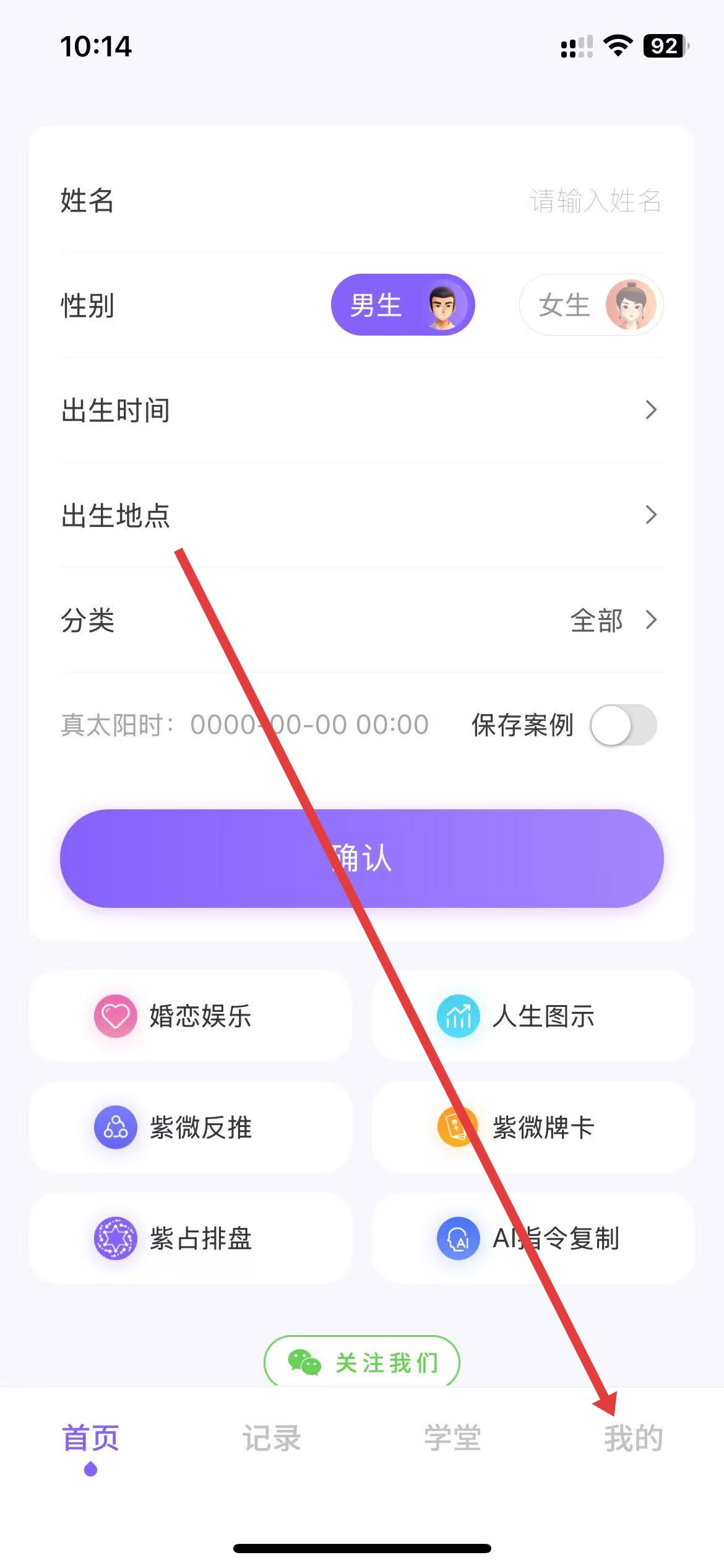 1、打开吉真紫薇app,点击底部导航栏中的我的选项。